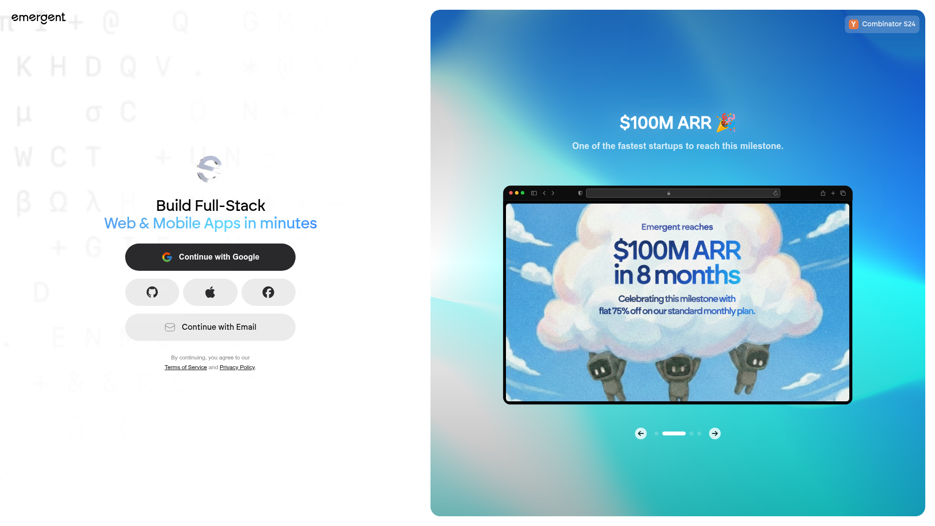 Emergent is a Y Combinator-backed (S24) platform that has grown explosively — reaching $100M ARR faster than almost any startup in history. It bills itself as more than a coding assistant: it is a fully integrated platform where AI agents autonomously design, code, test, and deploy your application from start to finish.